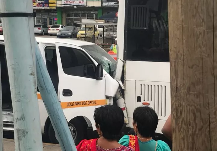 Un busito del Estado chocó contra un metrobús la tarde de ayer, jueves, en la Vía Domingo Díaz, a la altura de Cerro Viento, en dirección a Panamá Este.