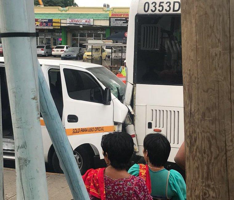 Un busito del Estado chocó contra un metrobús la tarde de ayer, jueves, en la Vía Domingo Díaz, a la altura de Cerro Viento, en dirección a Panamá Este.