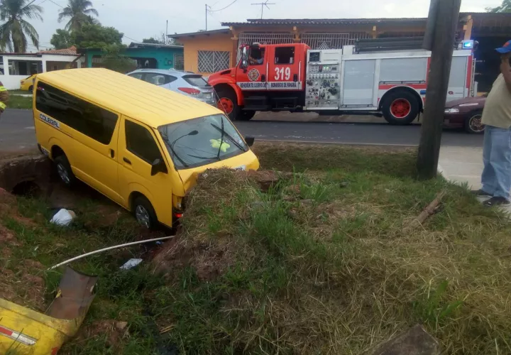 El transporte de estudiantes, con matrícula BC-2967, se salió de la vía en el sector de la 28 de Noviembre en el corregimiento de Barrio Colón, cayendo en una cuneta.