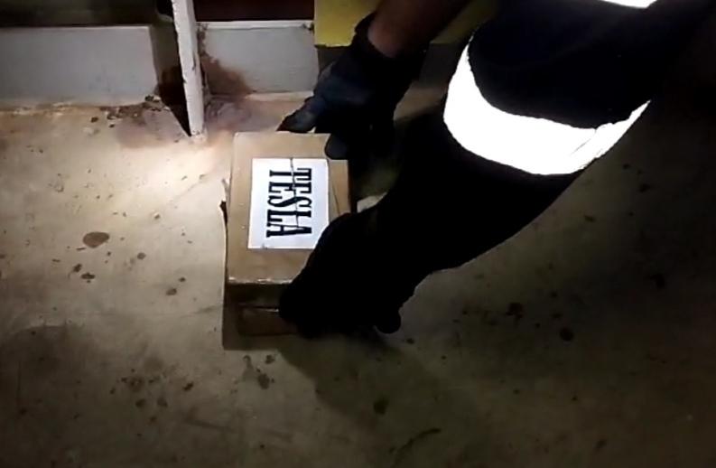 Los paquetes estaban forrados e identificados con la palabra “Tesla” y fueron ubicados en la parte trasera del contenedor.