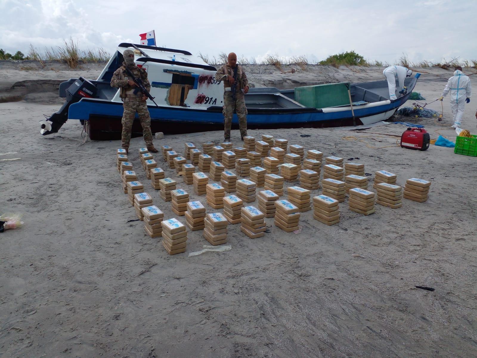 Panamá- Unidades aeronavales incautaron 609 paquetes de supuesta sustancia ilícita, la aprehensión de dos hombres y el decomiso de dos lanchas artesanales, en una operación llevada a cabo en Playa Claridad, Punta Chame.