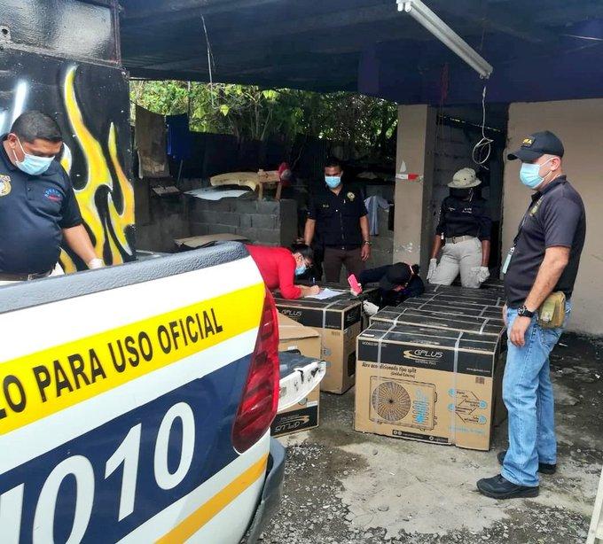 Inspectores de Aduanas y agentes de la Dirección de Investigación Judicial (DIJ) de la Policía Nacional decomisaron 16 aires acondicionados con sus compresores, 2 Smart tv de 50", 6 cartones y 5 cajetillas de cigarrillos por presunto contrabando.