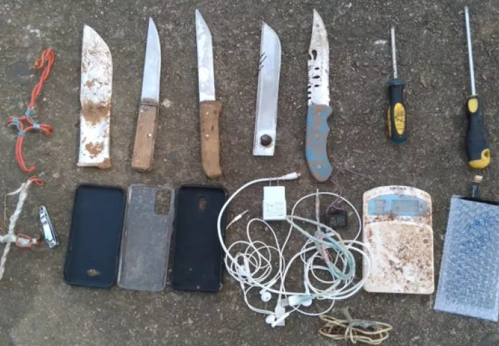 En la requisa decomisaron objetos punzocortantes, pesa digital y celulares.