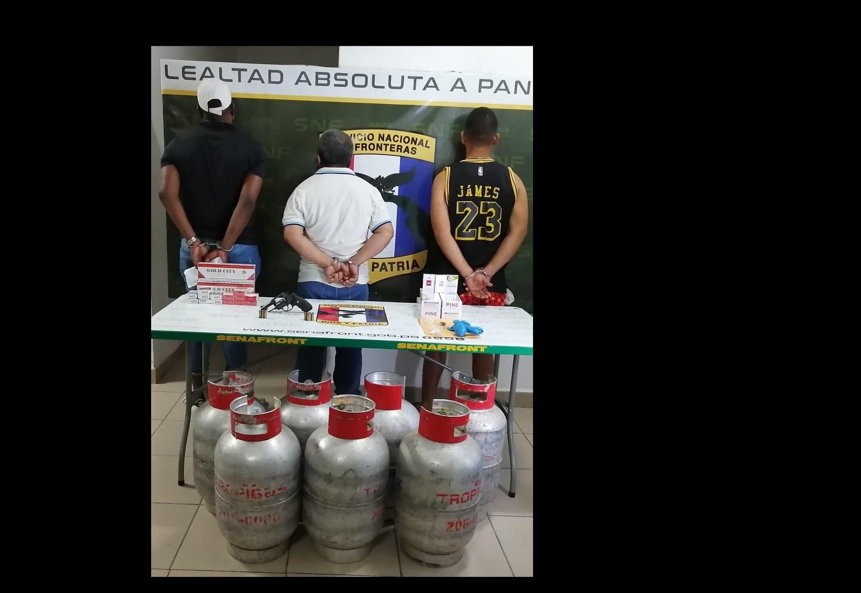 Durante los allanamientos se dio la aprehensión de tres ciudadanos panameños  y el decomiso de un arma de fuego, tipo revolver calibre 38 sin el permiso correspondiente 15 municiones calibre 38 una bolsa transparente con polvo blanco que se presume sea cocaína, otra bolsa color azul con hierba seca se presume sea Marihuana, siete tanques de gas para posible contrabando, artículos posiblemente utilizados para la venta de sustancias ilícitas y algunas cajas de cigarrillos de posible contrabando.