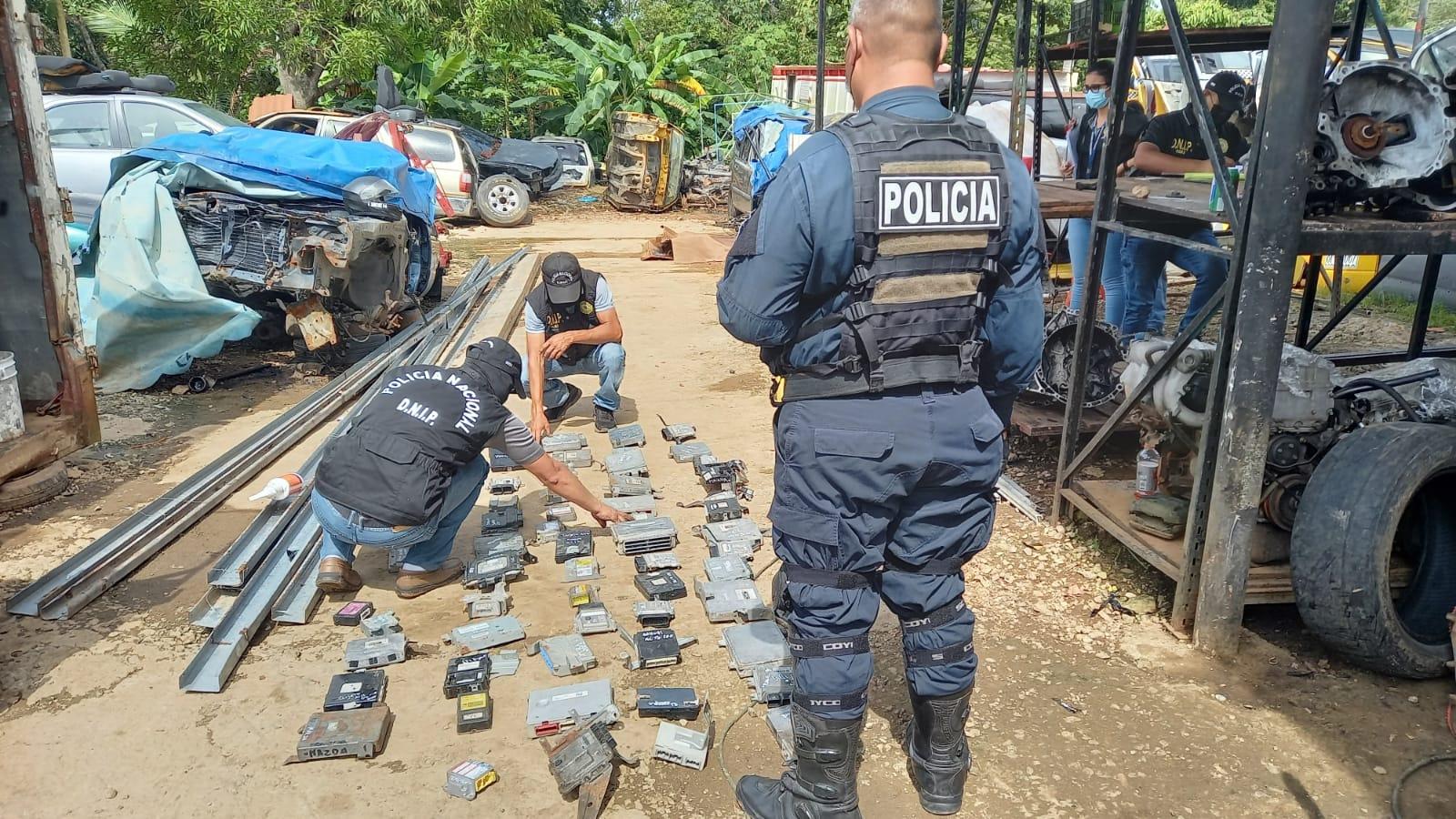 Estas computadoras fueron encontradas en un local (rastro), donde durante las diligencias también se ubicaron 14 vehículos, 10 motores, 10 puertas de autos, tipo taxi, y placas, que se presume mantienen denuncia de robo y hurto, lo que está siendo investigado, indicó el comisionado Matías Batista, jefe de la zona policial de Don Bosco.