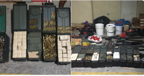 Las autoridades están contabilizando las municiones y armas encontradas. Se ubicó pólvora en gran cantidad y equipo para la fabricación de municiones.