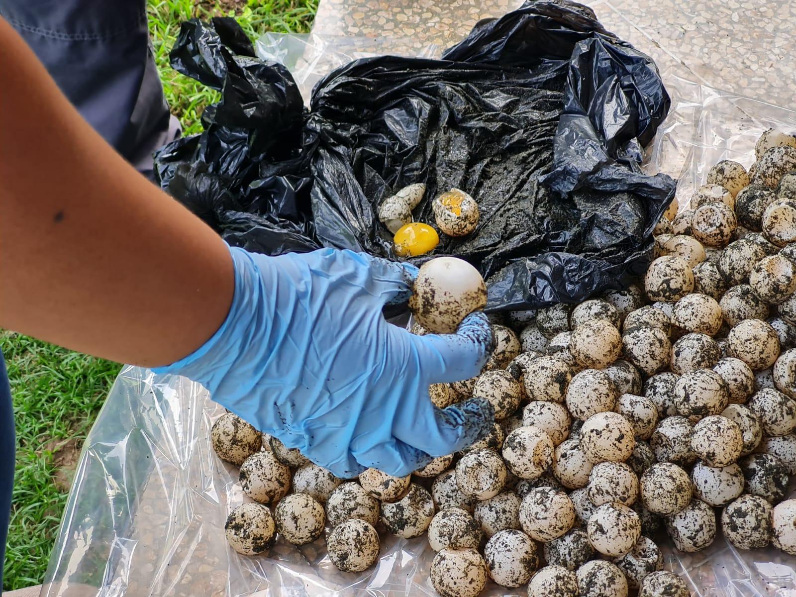 Tras el decomiso se realizó la verificacion del estado de los huevos para establecer el destino estos, ya que cuando estos pasan más de 6 horas fuera de los nidos, no logran eclosionar.