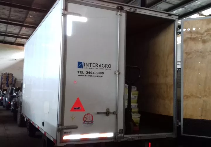 En el vagón del camión se encontraron 40 sacos de vitaminas acción Termo control, 16 galones de Virosit, 200 vacunas para animales, 15 tanques de Bisogel, 64 litros de Roselquín y un saco de Tiamolin.