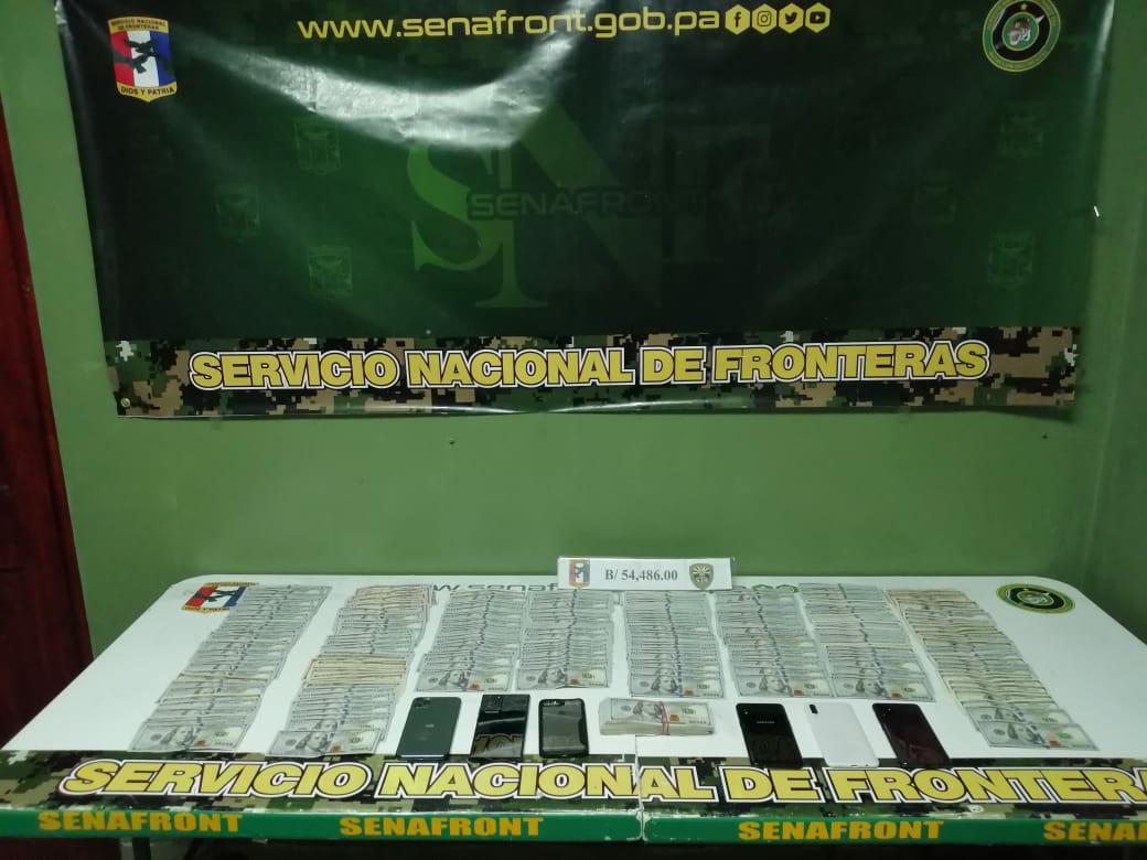 Unidades del Servicio Nacional de Fronteras (Senafront) en el puesto de control de San Isidro en la provincia de Chiriquí, dieron con el decomiso de B/.54 mil 486.00 balboas así como varios teléfonos celulares.