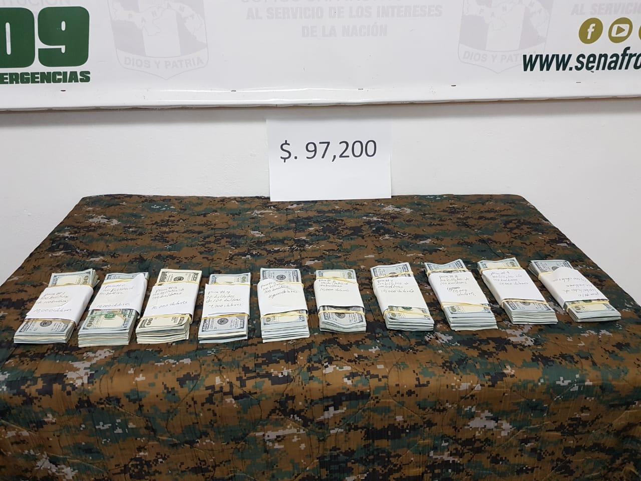El decomiso de dinero se realizó en el sector fronterizo de Paso Canoas cuando las unidades visualizan un sujeto de aproximadamente unos 35 años de edad, de nacionalidad costarricense bajándose de un bus Panamá, David Frontera de la ruta Panachif, con su equipaje y al observar las unidades del Senafront trata de evadirlo y tomar por otra área, siendo aprehendido de forma inmediata y conducido al cuartel de Paso Canoas donde reconoció que llevaba el dinero.