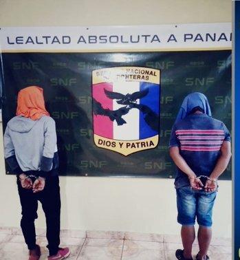 Estos dos sujetos fueron aprehendidos ayer, lunes, por unidades del Servicio Nacional de Fronteras (SENAFRONT), bajo órdenes del Ministerio Público, durante una diligencia de allanamiento en Santa Fe.