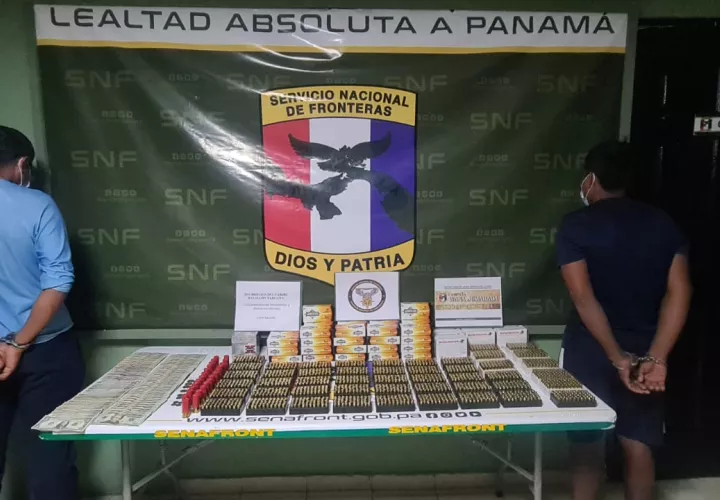 Los dos ciudadanos fueron aprehendidos por agentes del Servicio Nacional de Fronteras (Senafront), el pasado sábado, en el muelle de Cartí, cuando se mantenían a bordo de una embarcacion con cierta cantidad de municiones que se detallan: