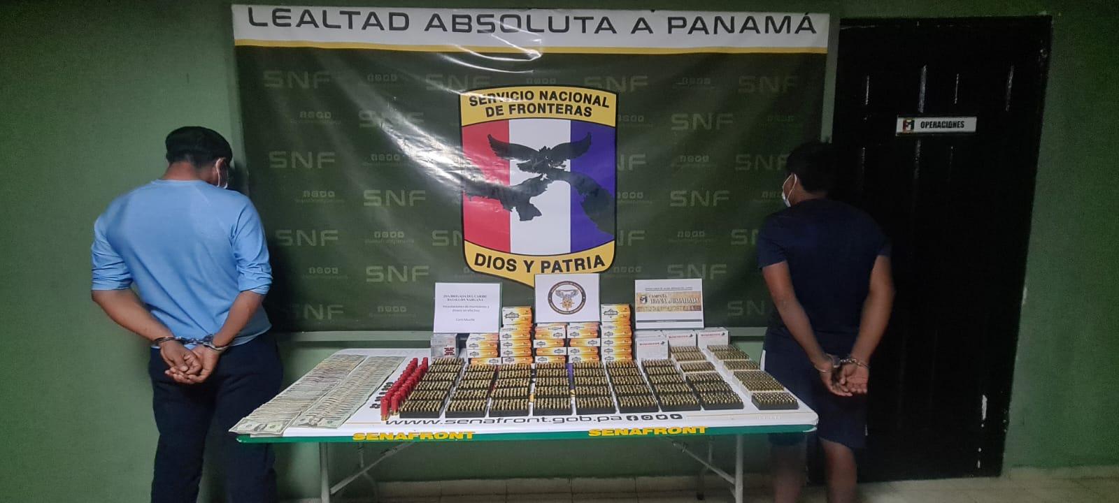 Los dos ciudadanos fueron aprehendidos por agentes del Servicio Nacional de Fronteras (Senafront), el pasado sábado, en el muelle de Cartí, cuando se mantenían a bordo de una embarcacion con cierta cantidad de municiones que se detallan: