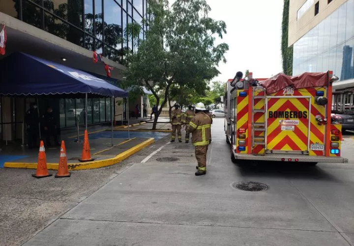 Unidades del Cuerpo de Bomberos de Panamá atienden hoy una emergencia en el edificio de la Dirección General de Ingresos (DGI), localizado Calle 41, Bella Vista. Se siente un fuerte olor a gas.