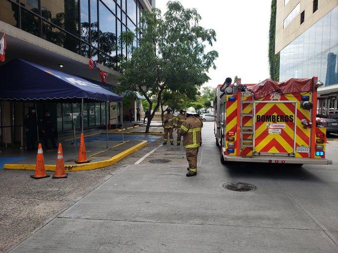 Unidades del Cuerpo de Bomberos de Panamá atienden hoy una emergencia en el edificio de la Dirección General de Ingresos (DGI), localizado Calle 41, Bella Vista. Se siente un fuerte olor a gas.