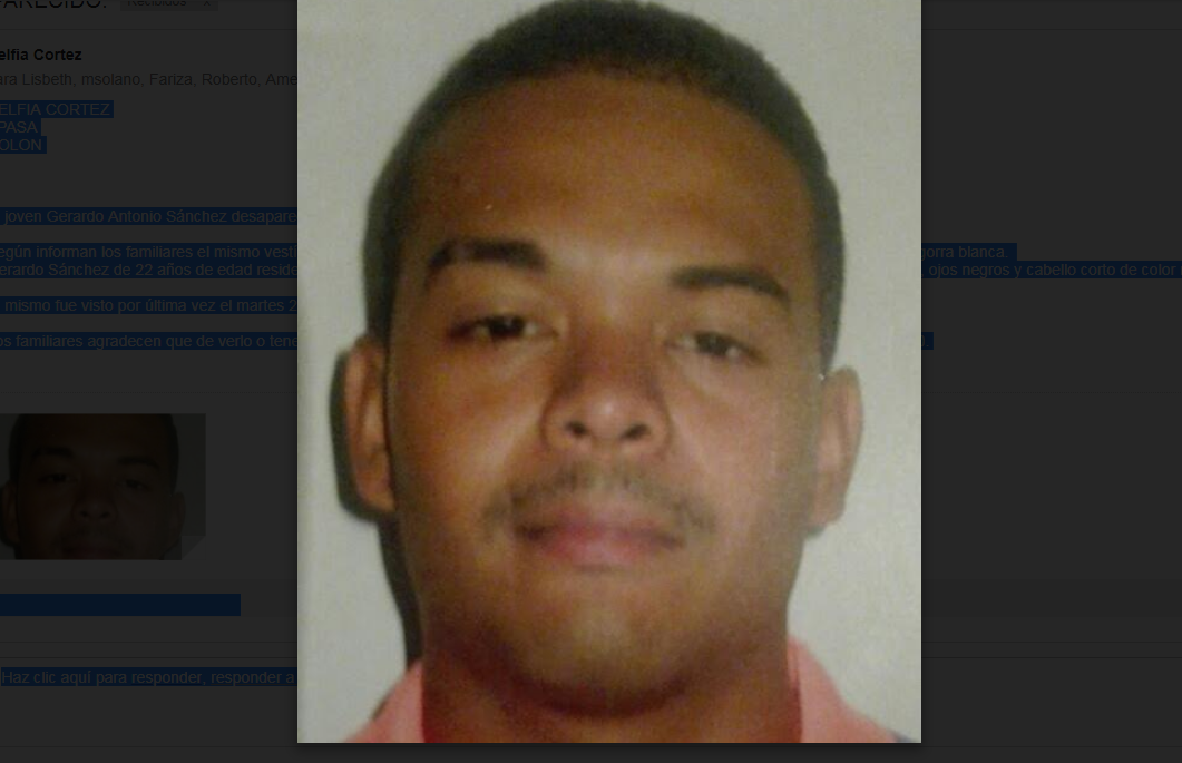 Gerardo Sánchez de 22 años , reside en la ciudad de Colón, tiene estatura de 1.70 mts, contextura media, tez de piel trigueña, ojos negros y cabello corto de color negro.