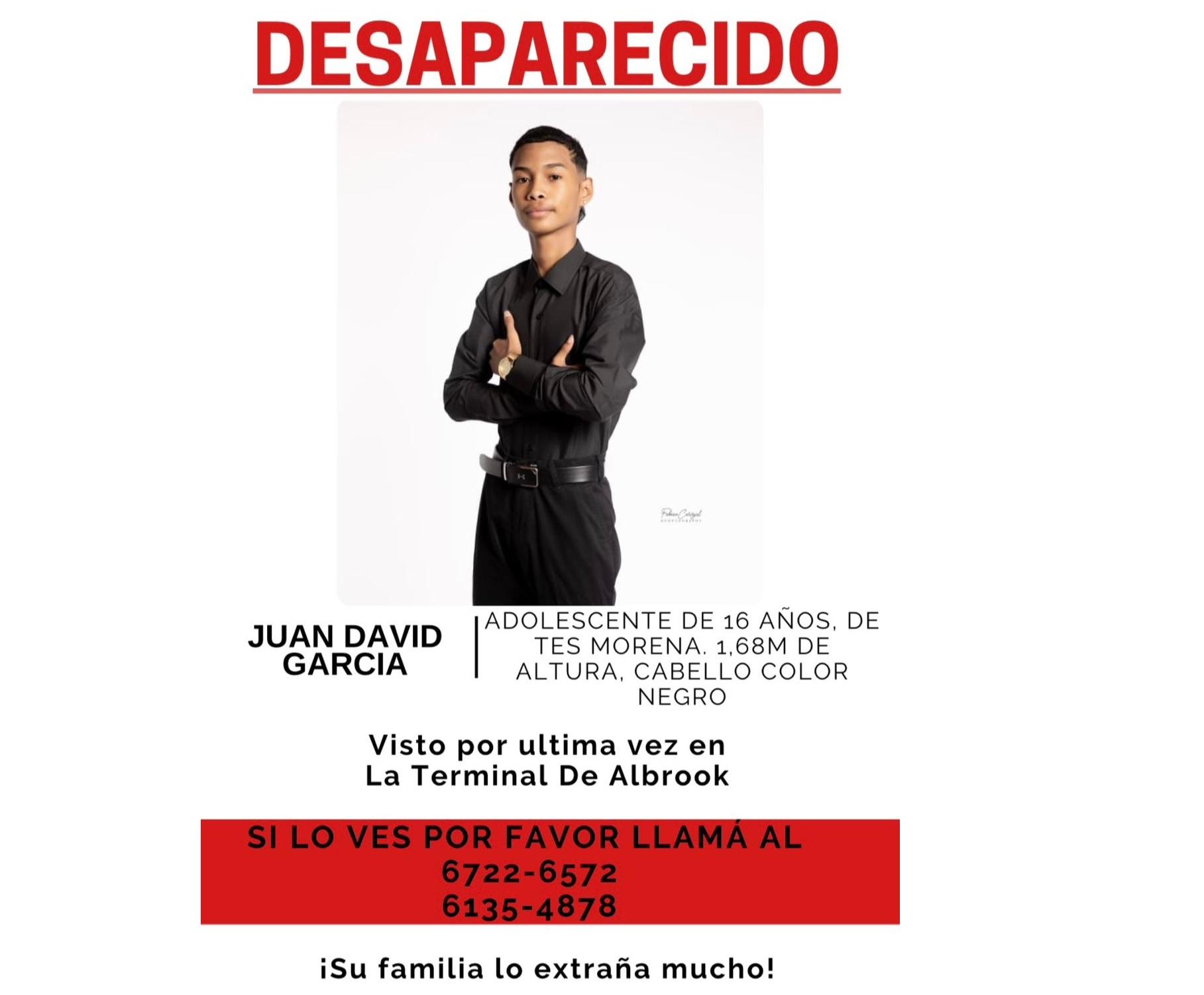 Juan David García, de 16 años, fue visto por última vez en la estación del Metro de Albrook, donde el bus lo dejó como cada día. Juan, quien tiene discapacidad auditiva y del habla, desapareció sin dejar rastro.