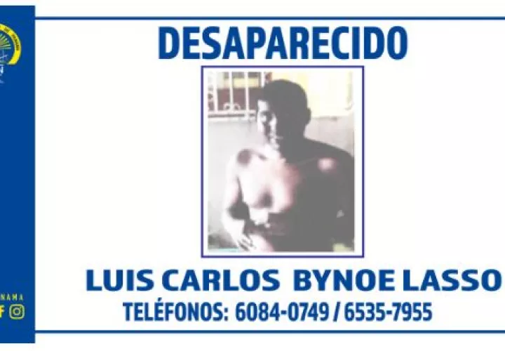 De acuerdo a familiares de Luis Carlos Bynoe Lasso, la última vez que fue visto fue en su residencia ubicada en la barriada El Palmar, distrito de Arraiján. Vestía jeans largo claro, suéter celeste y zapatillas rojas con blanco.
