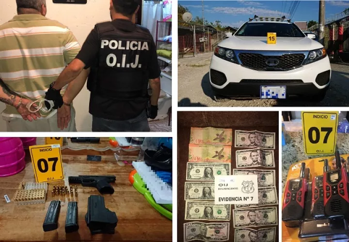 Los operativos se realizaron en ocho allanamientos en Golfito y uno en Belén de Heredia, donde se decomisaron dos pistolas, un revólver, dos escopetas y un rifle. Además, se ha incautado más de un millón de colones en efectivo, siete vehículos, teléfonos celulares, radios para comunicación y munición para arma de fuego calibre 9 milímetros, 357 y calibre 12.