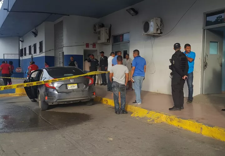 El auto con los proyectiles quedó acordonado frente a la entrada en urgencias a la espera de dirección de investigación judicial.