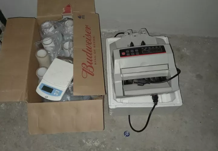 En el desarrollo de la acción, las unidades policiales también localizaron una máquina de contar dinero, gran cantidad de material para embalaje y municiones.