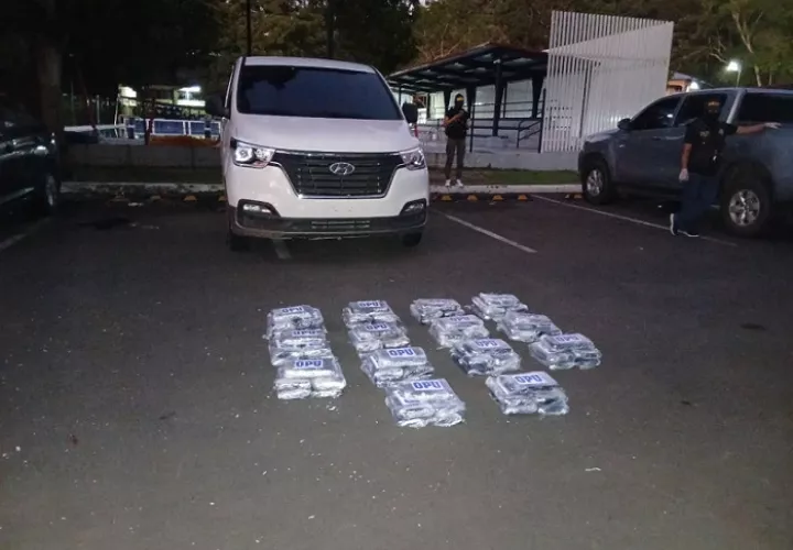 Panamá- Un total de 70 paquetes de presunta droga, que estaban ocultos en un doble fondo de un panel blanco, fueron decomisados por la Policía Nacional en una vía próxima al puente Centenario, en Ancón.