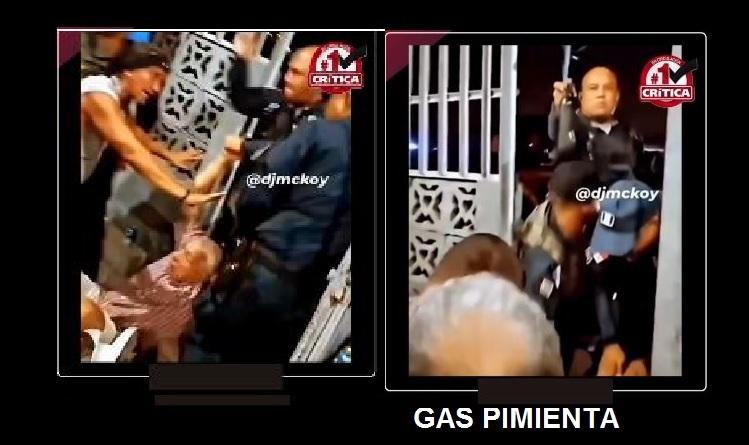 En imágenes de un video que fue posteado en las redes sociales se observa al adulto en el piso mientras varias unidades de la Policía Nacional intentaban levantarlo para aprehenderlo. El medio de esa escena, se escucuchan gritos de desaprobación de las acciones policiales.