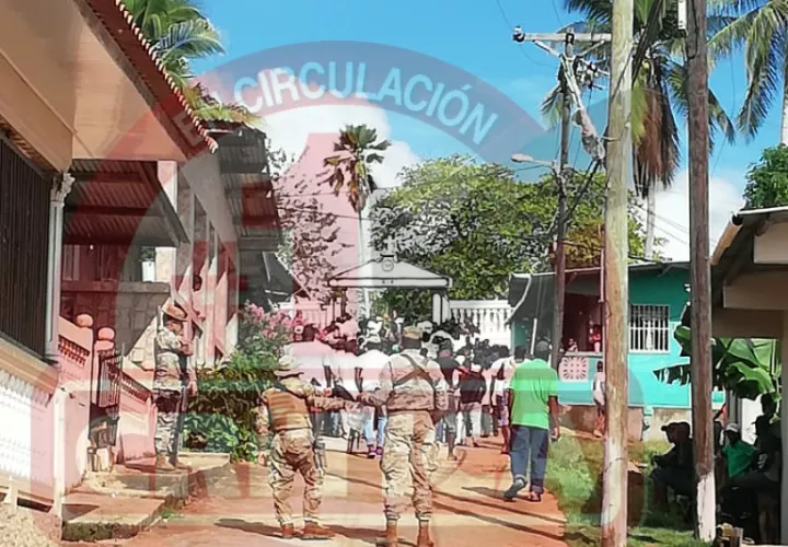 Unidades del Servicio Nacional Aeronaval vigilaban todo el movimiento que se dio hoy durante el entierro de María Berrios, alias ‘La Viuda’, asesinada el pasado 28 de mayo, en la isla San Miguel, ubicada en el Pacífico.