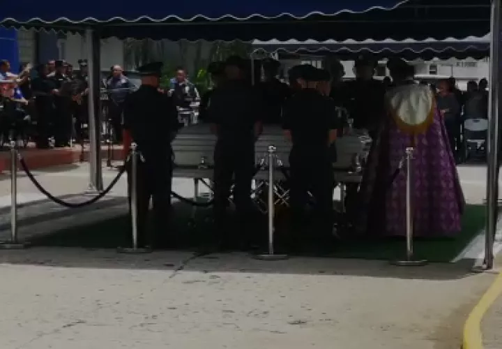 El ministro de Seguridad, Rolando Mirones; altos mandos de la oficialidad, familiares y compañeros estuvieron presente en la ceremonia fúnebre que se desarrolló en la sede central de la Policía Nacional, en Ancón.