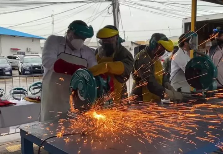 Durante el acto, el ministro de Seguridad, Juan Pino y el viceministro, Ivor Pitti , recibieron la donación de equipos para la destrucción de armas de fuego, por parte del jefe de la delegación de la Unión Europea en Panamá, Chris Hoornaert.