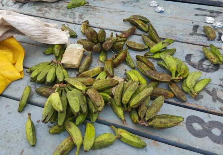 Panamá- Más droga fuera del mercado nacional. Agentes del Servicio Nacional Aeronaval (Senan) confiscaron presunta sustancia ilícita en un saco de plátanos.
