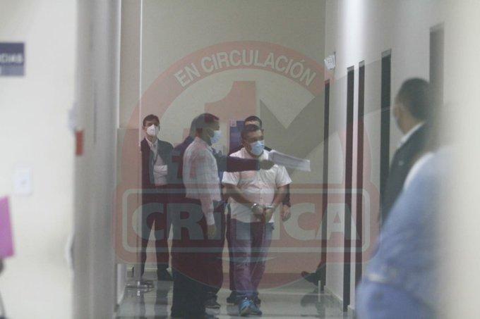 El gobernador fue trasladado en horas de la tarde a la sede del Sistema Penal Acusatorio (SPA), plaza Ágora, fuertemente custodiado por policías y esposado de manos y pies.