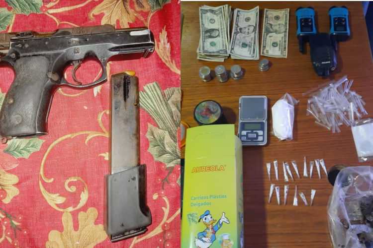 Además de las aprehensiones se decomisaron un arma de fuego calibre 9 milímetros, municiones, 154 carrizo que contenían presunta cocaína, dos bolsas con hierba seca presumiblemente marihuana; una pesa digital y dinero en efectivo entre otras evidencias.