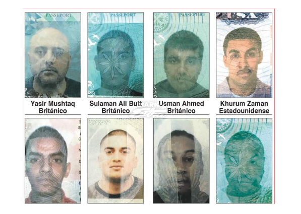 Los ocho presuntos terroristas responden a los nombres Yasir Mushtaq, Sulaman Ali Butt, Usman Ahmed, Khurum Zaman, Ibrahim Ahmed, Abdul Ghaffar Ghani, Ashley Charles Burton y Denzil Stephen Mark Tapper.