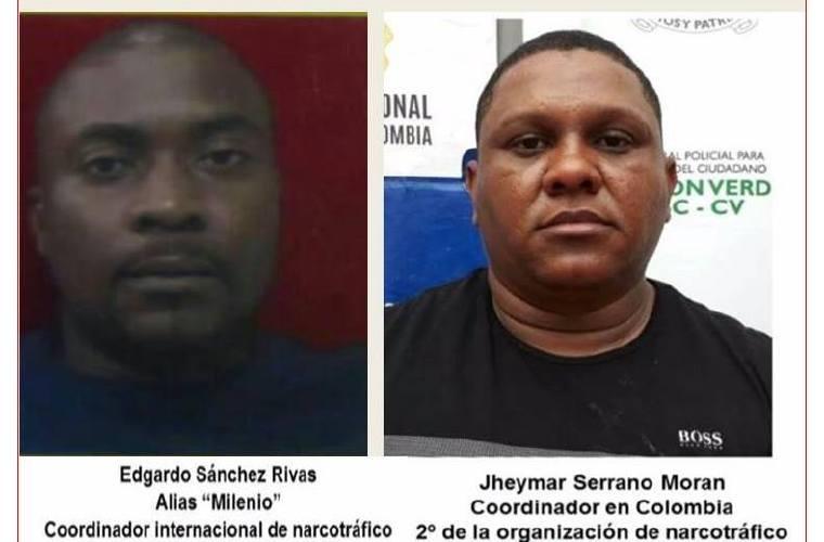Según la Policía, la presunta actividad delictiva que realizaba “Milenio” en Colombia, la llevaba a cabo con la complicidad de Jheymar Gerardo Serrano Morán, quien movía cargamentos de drogas desde las costas del Pacífico (Juradó y Buenaventura) a Centroamérica.