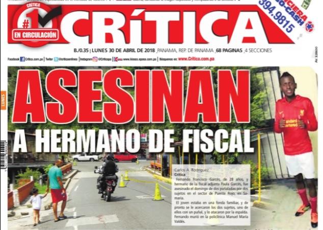 Fernando Francisco Garcés, de 28 años, y hermano de la fiscal adjunta Paula Garcés. fue asesinado ayer domingo de 2 puñaladas, por dos sujetos en el sector del Puente Rojo, Samaria.