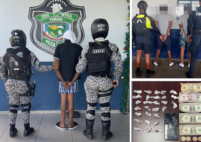 El segundo caso se dio en la comunidad Alto de Los Lagos, cuando los agentes policiales Linces detuvieron a un hombre de 42 años de edad, quien al ser sometido a revisión se le detectaron carrizos de droga en una cangurera que portaba. Además de dinero y un celular, evidencia que será parte del proceso por venta de droga (microtráfico).