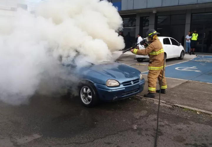 Los bomberos continúa atendiendo emergencias por autos incendiados. Un primer vehículo se incendió hoy frente a una entidad bancaria privada en David, provincia de Chiriquí.