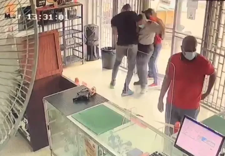 Dos delincuentes roban en un local; forcejean con el seguridad