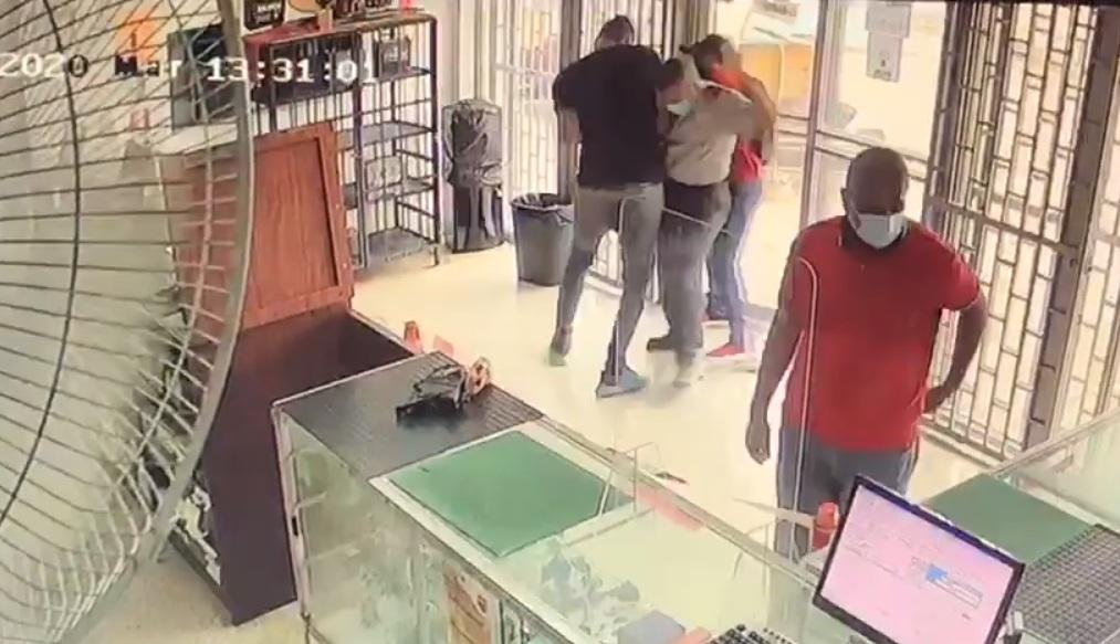 Un video que corre en las redes sociales muestra la forma en la que dos delincuentes someten a un seguridad y ejecutan un robo en un local de venta de repuesto.
