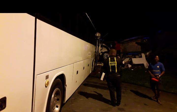 Dos personas lesionadas fue el resultado de un choque entre dos buses a la altura de la comunidad de Río Gatún, provincia de Colón, pasada las 10:00 p.m. del domingo.