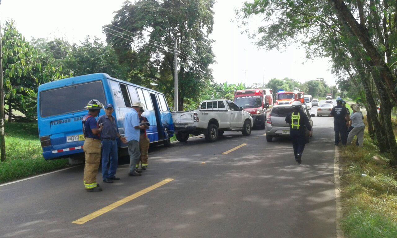 El hecho se dio este viernes cuando el bus de la ruta Tebario-Mariato, con matrícula 9B-0346 y que viajaba con destino a la ciudad de Santiago, chocó por detrás a un pick-up de color blanco.