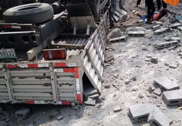 Dos heridos y volquete queda llantas pa´arriba por accidente en el oeste