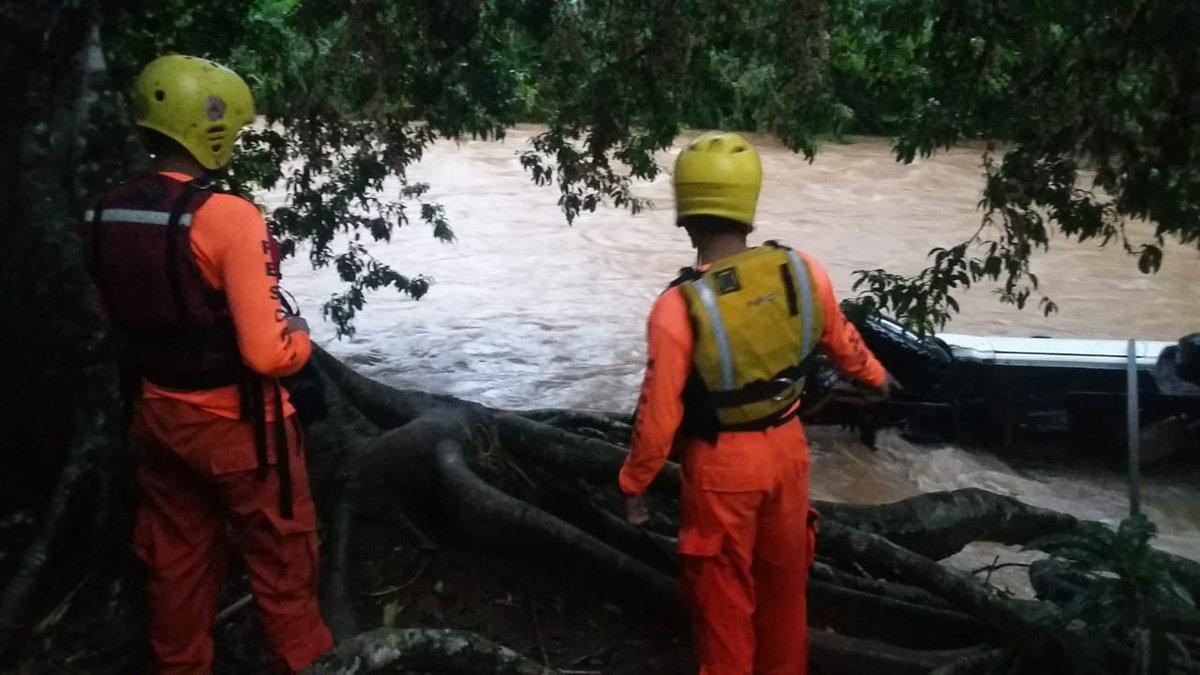 La fuerza del río, arrastró unos 500 metros río abajo al vehículo el cual quedó volcado sobre un costado en medio del cauce del torrente, en donde fue atado por rescatistas del Sinaproc a los árboles ubicados en la ribera.