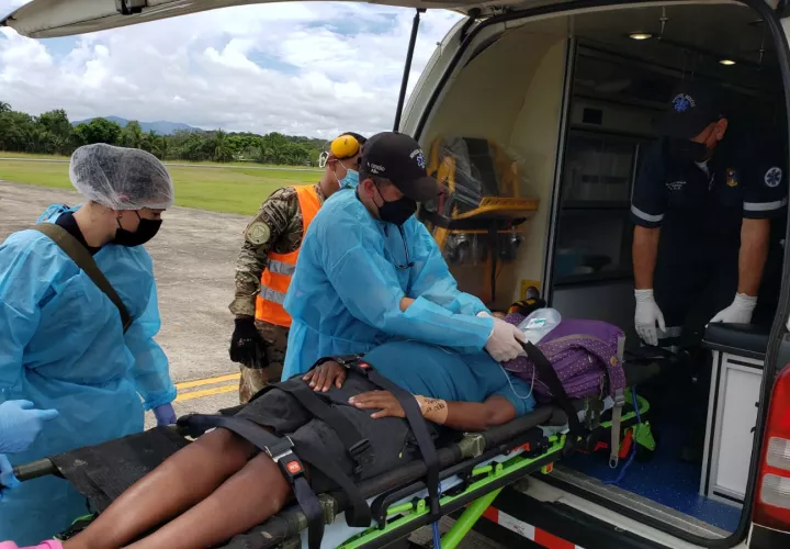 Lo difícil del terreno, muchas veces complica la labor de las unidades, pero no se detienen ante la esperanza de salvar vidas, es por ello… que en un esfuerzo de todo el equipo de paramédicos y de seguridad, ambas fueron trasladadas en camillas varios metros, cruzando el río, hasta llegar al área donde esperaba el helicóptero para trasladarlas vía aérea hasta el aeropuerto de Nicanor, donde ya aguardaba una ambulancia para inmediatamente llevarlas al hospital en Metetí.