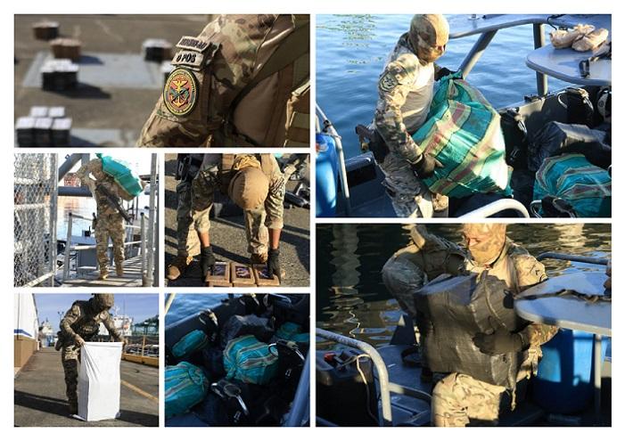 Como los sacos estaban a la vista, los tripulantes, el navío y el narcocargamento fueron trasladados hacia la Base Naval Capitán de Fragata D.E.M Noel Antonio Rodríguez Justavino, en donde el personal de la Fiscalía de Drogas de Panamá procedió a contabilizar los paquetes de sustancia ilícita.