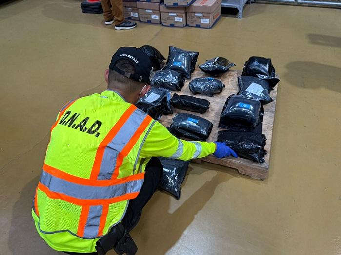 La sustancia ilícita, embalada en bolsas negras, fue ubicada por unidades de la Dirección Nacional Antidrogas (DNAD), durante una diligencia de allanamiento y registro en la terminal de carga.