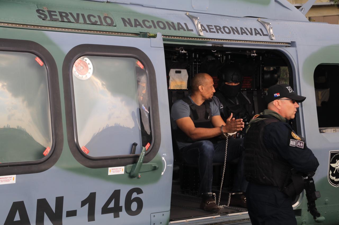 El hombre más buscado y oriundo de Colón en el momento de su trasladado vestía de suéter y pantalón largo con un chaleco antibalas, y esposado de pie y manos.