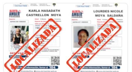 La Unidad Especializada de Personas Desaparecidas de la Procuraduría General de la Nación confirmó que las menores Karla Castrellón Moya y Lourdes Moya, por quienes se había activado la @AlertaAmberPma, han sido ubicadas con éxito.