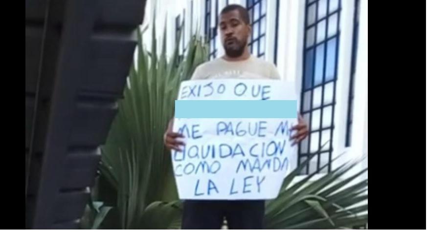 Específicamente, el hombre solicitaba que se le pagara una liquidación completa de su salario y esto lo expresaba a través de un mensaje en una pancarta que indicaba: "Exijo que Ricardo Pérez me pagué mi liquidación como manda la ley".